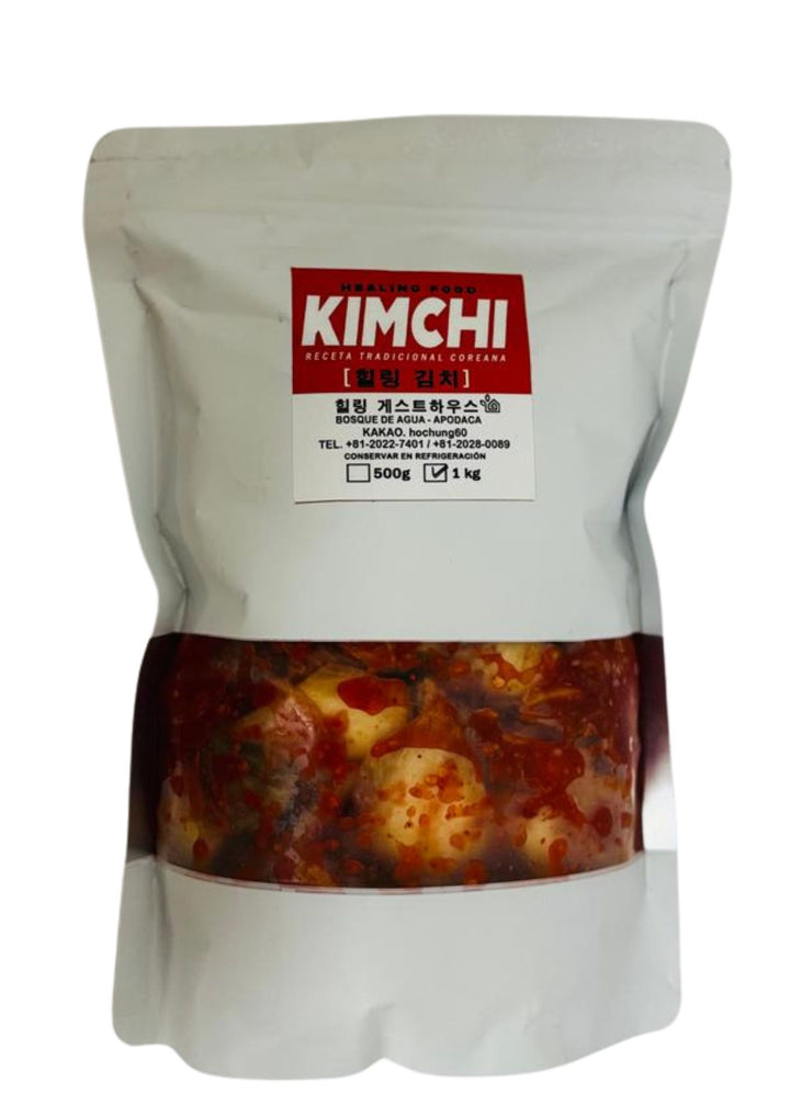 Kimchi auténtico preparado según una receta tradicional coreana. Este kimchi contiene col napa fermentada con una mezcla de ajo, jengibre, chile coreano y otros condimentos naturales. El resultado es un alimento probiótico, picante y sabroso, ideal como acompañamiento o ingrediente para múltiples platillos asiáticos.