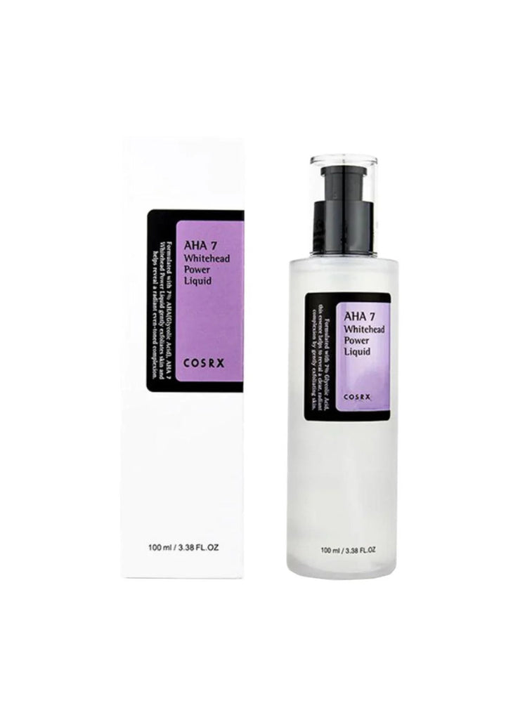 El AHA 7 Whitehead Power Liquid de COSRX es un exfoliante químico formulado con 7% de ácido glicólico (AHA) y extractos naturales, diseñado para eliminar células muertas, disolver puntos blancos (whiteheads) y mejorar la textura y luminosidad de la piel. Es ideal para quienes desean un tratamiento suave pero eficaz para combatir el acné no inflamatorio y la piel opaca.