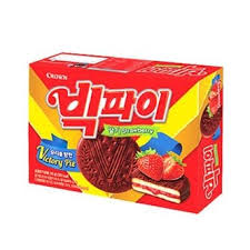 El Big Pie de Crown es un delicioso pastelito estilo galleta relleno de mermelada de fresa y cubierto con una fina capa de chocolate suave. Un clásico snack coreano que combina lo dulce y lo frutal en cada mordida.