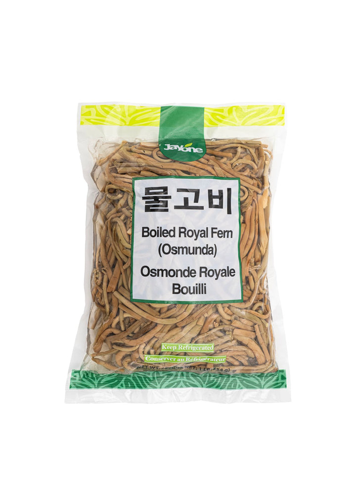 La helecho real hervido (Osmunda) de JAYONE es un ingrediente tradicional coreano, también conocido como gosari. Utilizado comúnmente en platos como el bibimbap y sopas, este vegetal silvestre cocido está listo para usar, aportando una textura tierna y un sabor único y terroso.