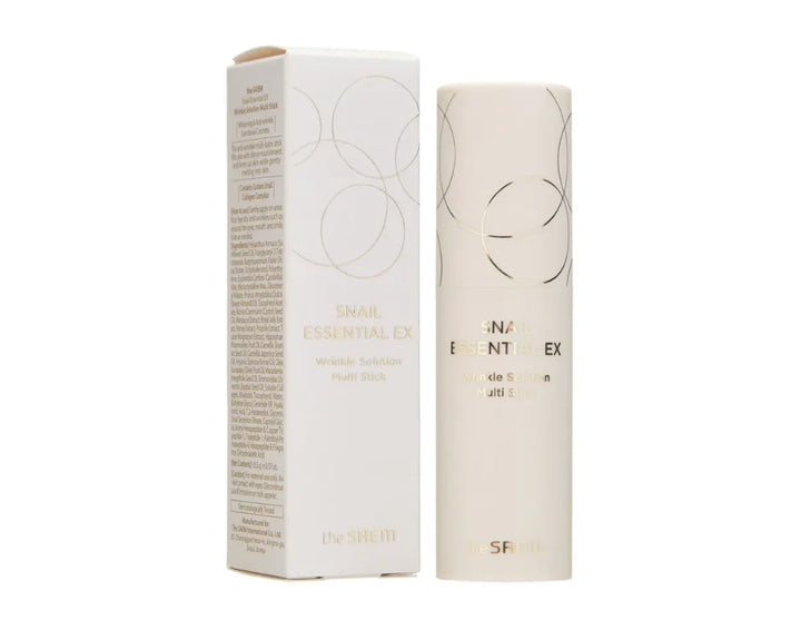 El Snail Essential EX Wrinkle Solution Multi Stick de THE SAEM es un práctico bálsamo en barra antiedad diseñado para reducir arrugas, líneas de expresión y mejorar la elasticidad de la piel. Ideal para aplicar en cualquier momento del día, brinda nutrición intensa, hidratación profunda y un efecto reafirmante inmediato gracias a su fórmula enriquecida con mucina de caracol.